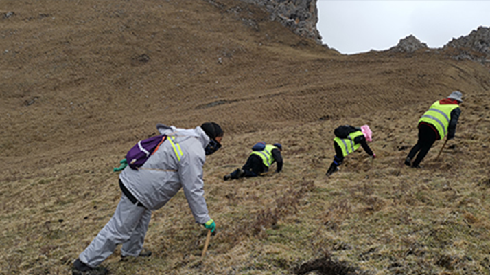 挖草:发现虫草后,用小铲子在距离虫草根部 10—15 厘米处轻轻挖开冻土,避免铲断虫体;再顺着虫体慢慢剥离土壤,确保虫体完整。